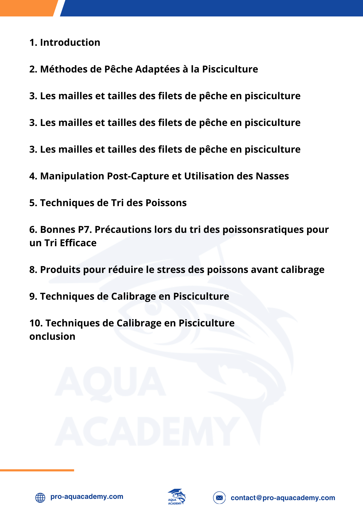 Techniques de pêche, Tri et Calibrage en pisciculture
